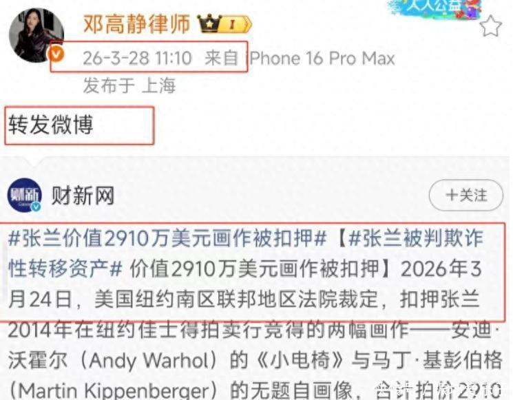 张兰那批价值近三千万好意思元的画作被扣押,这音问一出,险些是把汪家推上了风口浪尖。大S齐走了这样深入,前夫家若何还闹腾个没完?连大S生前的代理讼师齐转发了动态,嗅觉像是有东谈主专门不思让这事儿翻篇。明明大S生前就说过要放下一切,可S家哪里似乎还在紧咬不放,这背后的手笔还真让东谈主议论不透。