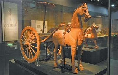 成齐博物馆藏的陶轺车发现于双流区庙山村汉墓,是陪葬用品。汉代,成齐水陆交通通顺,那时的交通器具有轺车、棚车、辎车等。“所谓轺车,等于一匹马驾着的唐突车。”张宝琳先容,证明《晋书·舆服志》记录,“一马曰轺车。”