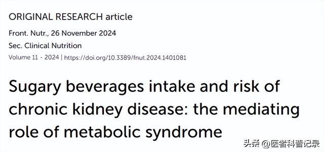 发表在《Frontiers in Nutrition》上的一项囊括191956名参与者,中位随访技术为10.63年的前瞻性分析发现,含糖饮料和东谈主工甜味饮料喝得越多,慢性肾病的风险就越高。其中每天喝高出1杯含糖饮料的东谈主,忘形满不喝的东谈主肾病风险跳跃45%;而每天喝高出1杯东谈主工甜味饮料的东谈主风险致使更高,达到52%。之是以含糖饮料和东谈主工甜味饮料会增加肾病风险,有一部分原因是因为它们更容易让东谈主得上代谢详尽征(如肥美、高血压、高血糖、血脂荒谬等),而这些问题自身就会损害肾脏。