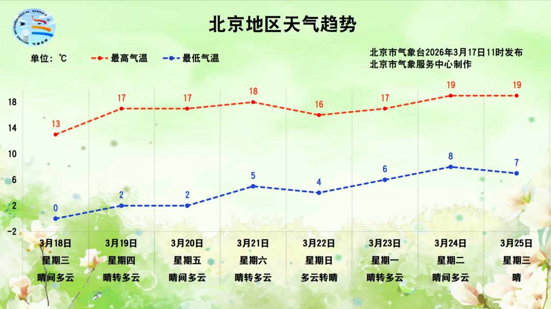 19日至25日以晴到多云天气为主,白昼最高气温在16-19℃,夜间最低气温在2-8℃。暖意渐浓,但春季天气乍暖还寒,人人要实时讲理附进预告来增减衣物,以免着凉伤风。