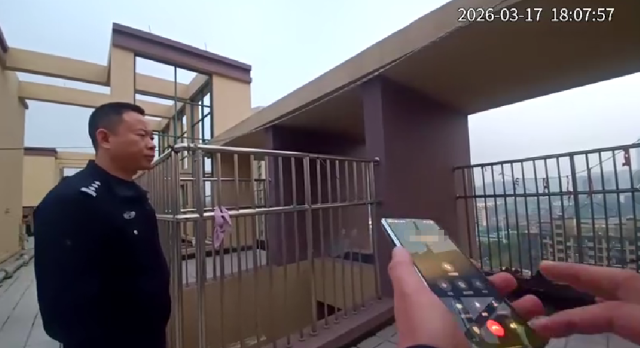 寻找的经由,不绝了21分钟。17点38分,无东说念主机终于证据了辩论:别称须眉坐在某小区的楼顶,东说念主踩在护栏外的褊狭立柱上,情况尽头危境。