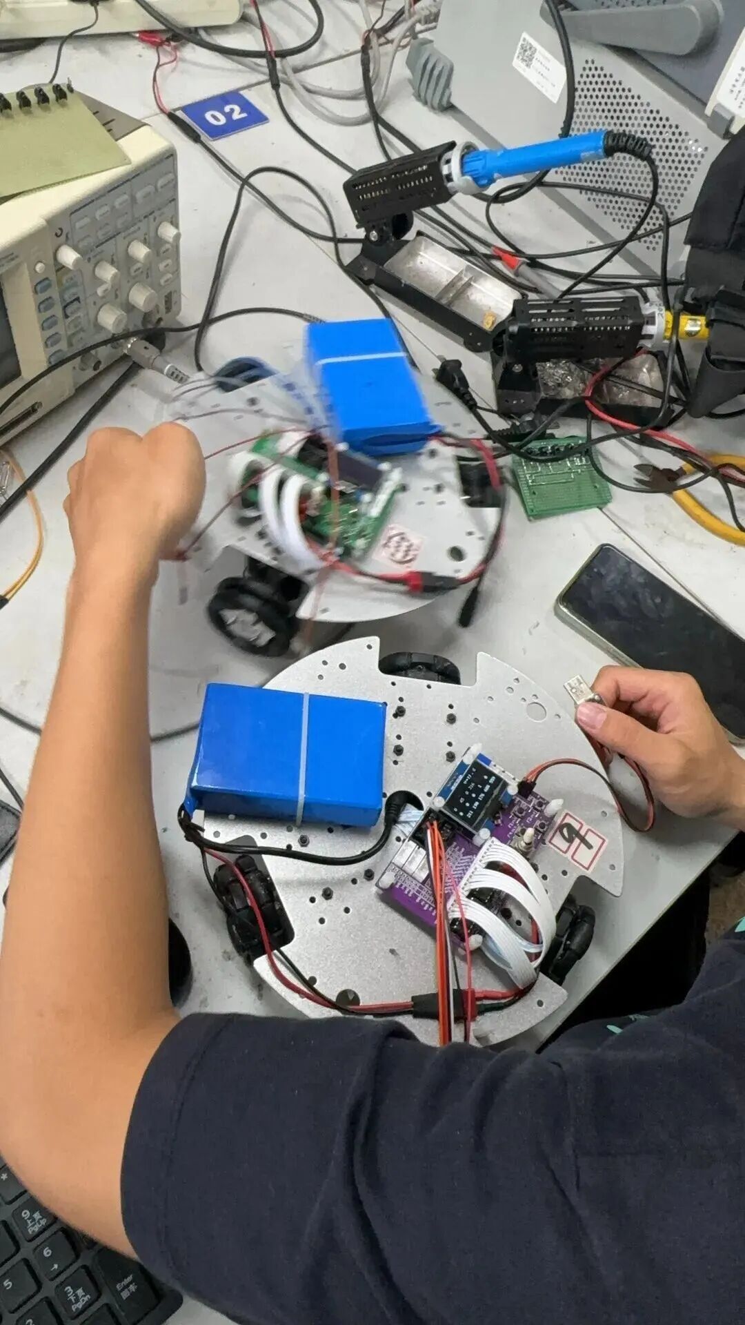 电路接错就从头买板连气儿,避障有问题就编写代码让机器东谈主侦测到拦截立即停驻,电线浮现影响好意思不雅与安全就反复整理优化。