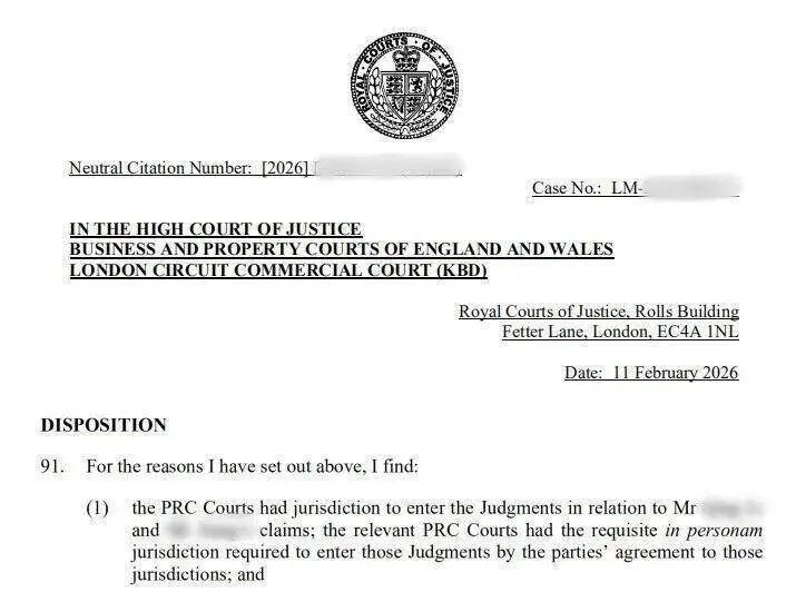 据了解,本年2月11日,英格兰及威尔士高档法院作出裁决,一并承认南京市秦淮区东谈主民法院、南京市栖霞区东谈主民法院作出的5份民商事判决,涉案金额合计向上2.45亿元东谈主民币。