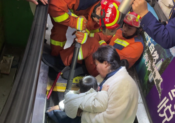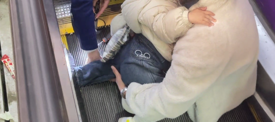 脚卡扶梯无法脱困