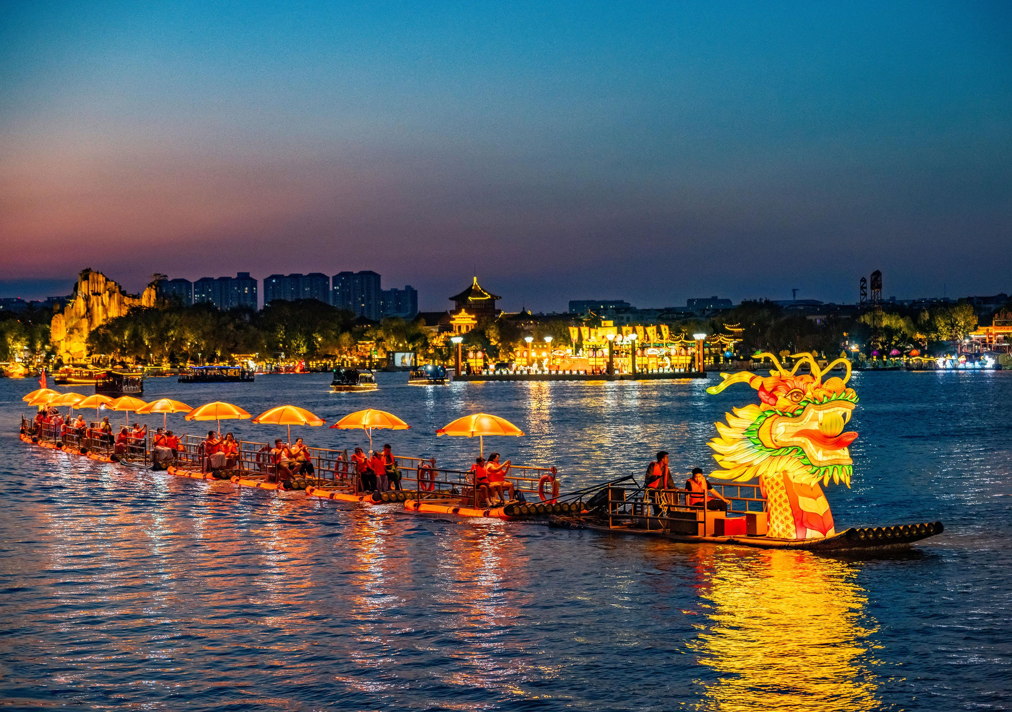 汴河游船景区是一处以北宋汴河历史文化为中枢的特色游览景区,通过城市的两湖一河,乘船游览的神色串联起把握八大景区。沿岸打造的宋词乐舞、豫剧、古典民乐等精彩献技,也为搭客带来一次宋韵整个的千里浸式体验。