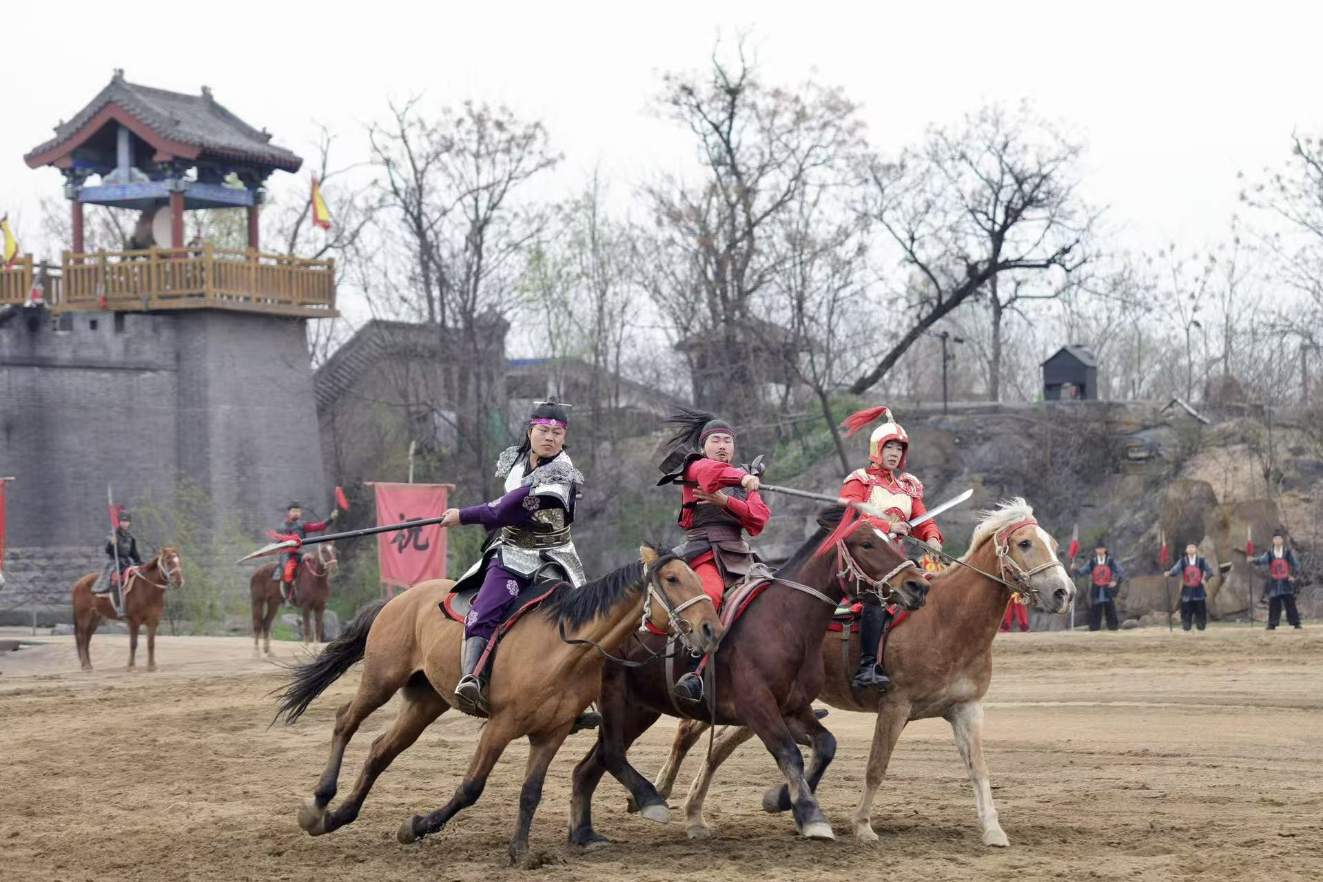 《三打祝家庄》的实景马战和夜幕来临后的非遗绝技“打铁花”皆是万岁山武侠城的中枢节目。