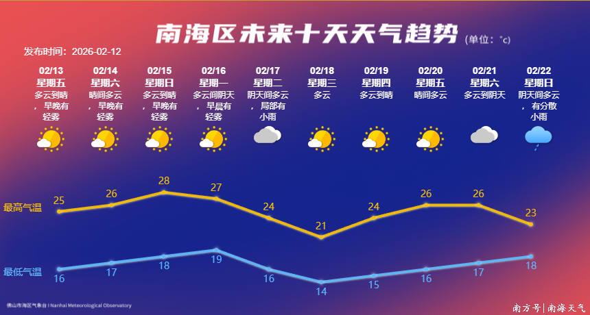 2月13日(年廿六):多云到晴,夙夜有轻雾,16~25℃;