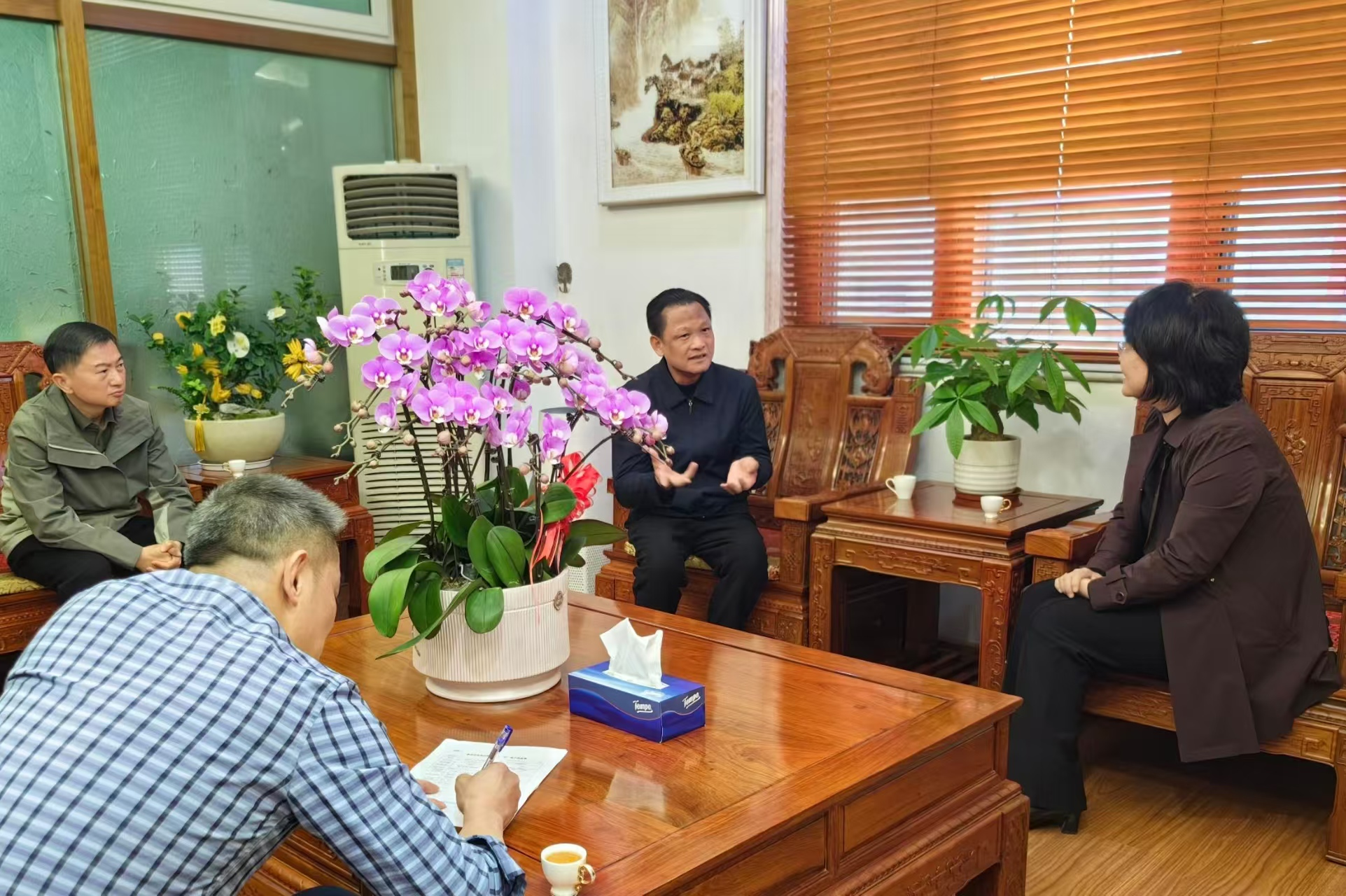 慰问时辰,市退役军东说念主事务局党组文告、局长伍卫华先自后到广东春天汽车集团有限公司与梅州市国盛医学科技有限公司,深远坐褥一线了解企业主见发展情况,并与市爱国拥军促进会会长李阳春、市退役军东说念主“红梅”志愿服务协会副会长牟彪等退役军东说念主代表漫谈调换。伍卫华充分确定两位退役军东说念主企业家“退役不磨灭、创业不忘本”的优秀品性,对他们积极履行社会职守、带动战友共同发展、纵情因循爱国拥军与志愿服务责任暗示维持。她强调,市退役军东说念主事务局将握续聚力服务退役军东说念主服务创业,进一步领略爱国拥军促进会、“红梅”志愿服务协会等平台作用,辅导强大退役军东说念主在服务“百千万工程”、绿好意思梅州生态成立等中心责任中展现新担当、新行为,共同自若军政军民妥洽的雅致场所。